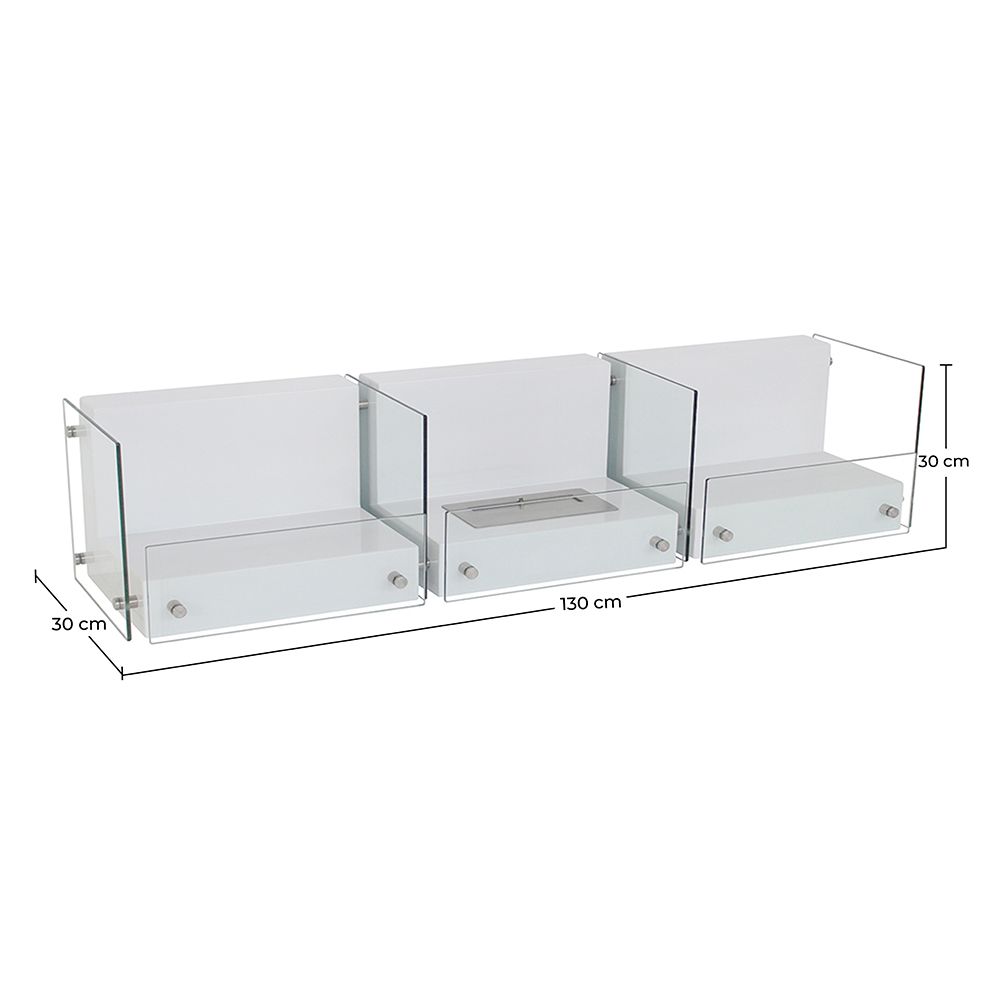 Información extra : Chimenea de pared. 7 paneles de cristal Securit, resistente a altas temperaturas; 8 soportes, 9 tornillos.