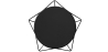 Esta mesa auxiliar fabricada enteramente en metal tiene una altura de 44 centímetros. Está formada por resistentes varillas de acero y una superficie redonda de 50 centímetros de diámetros.