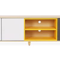 Este mueble de televisión nórdico está fabricado en madera MDF de gran densidad, las patas están hechas de madera maciza por lo que son muy estables y resistentes. Gracias a los múltiples compartimentos presentes en este mueble de televisión escandinavo podrás mantener todos tus dispositivos audiovisuales en el mismo lugar.