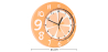 ¡Un reloj de pared rebosante de energía! Redondo, naranja y de diseño, este reloj tremendamente original de plástico coloreado se compone de dos partes. Un círculo grande, bordeado con números de color blanco que aportan un toque decorativo, y en su interior un círculo más pequeño, con las cifras y graduaciones en color negro. La aguja pequeña ha sido reemplazada por un tenedor, y la aguja grande por un cuchillo. Este reloj también le indica los segundos. El fondo del círculo representa una fruta cortada por la mitad, donde se pueden apreciar los cuartos. Ideal para su cocina.
