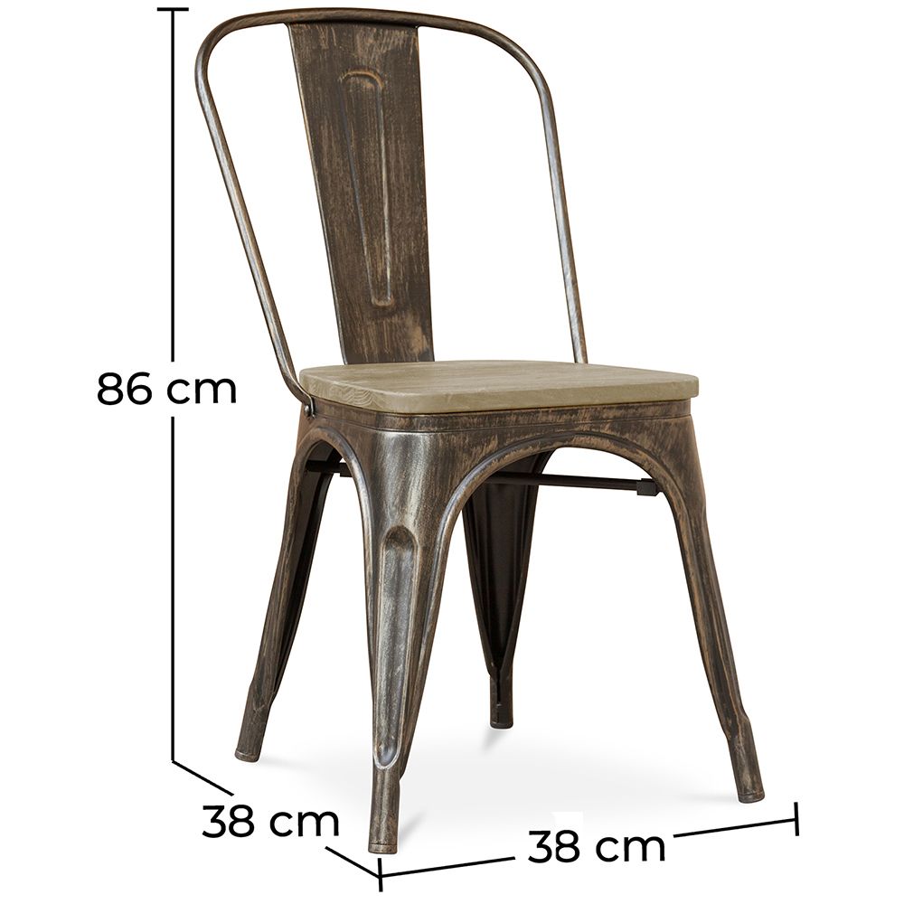 La silla Bistrot Metalix Style es resistente y apilable, al mismo tiempo que tiene en cuenta la necesidad de ligereza. Esto significa que puede moverla rápidamente del punto A al B si elige usarla como silla de restaurante o silla de bar. Un soporte de metal en forma de X debajo del asiento de madera mejora la resistencia de la silla.