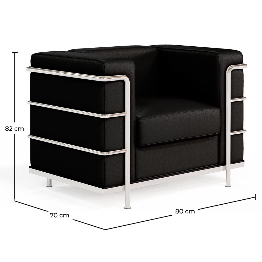 Este sillón de diseño de polipiel perfecto para oficinas, salas de espera y hoteles de lujo combina una estética sofisticada con una comodidad excepcional y una durabilidad excepcional. de polipiel perfecto para oficinas, salas de espera y hoteles de lujo combina una estética sofisticada con una comodidad excepcional y una durabilidad excepcional. El sillón Bour está tapizado en polipiel de alta calidad, que no solo ofrece una apariencia lujosa, sino que también es duradero y fácil de limpiar. Su textura suave y agradable al tacto añade un toque de lujo a cualquier entorno, mientras que su resistencia al desgaste garantiza que mantendrá su aspecto impecable a lo largo del tiempo. Cuenta con una estructura de metal cromado que añade un toque de elegancia y aseguran una base sólida y segura, lo que garantiza su estabilidad y capacidad para soportar un uso intensivo.