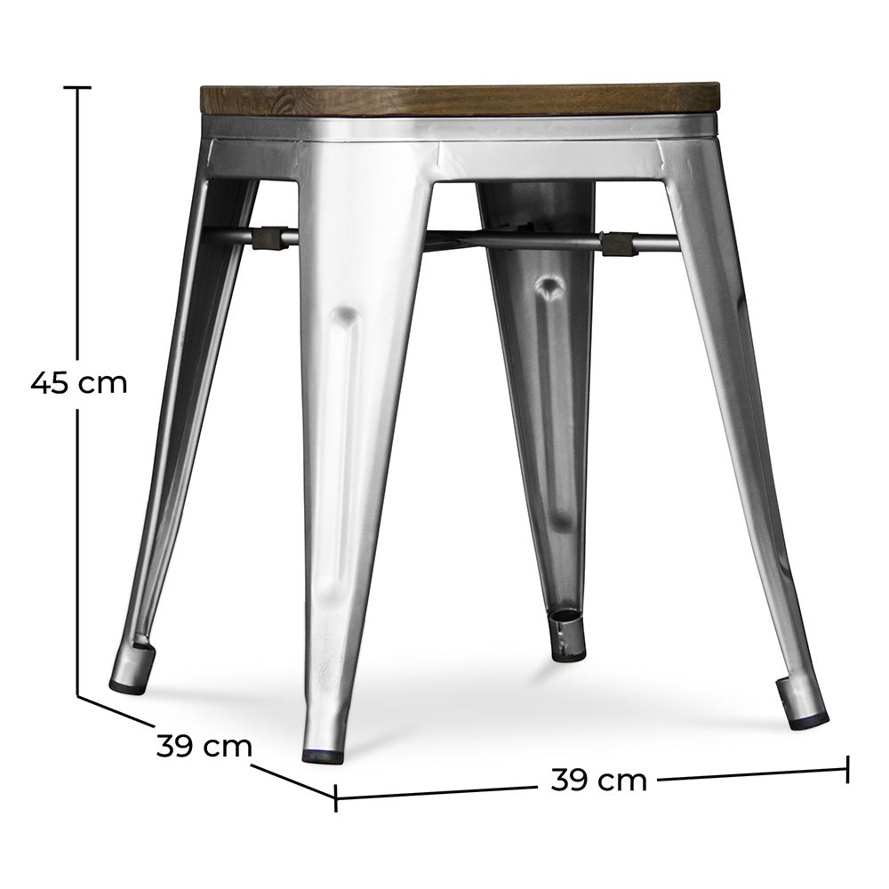 Este pequeño taburete Bistrot Metalix Style con asiento de madera. Está fabricado de hierro y tiene una altura de 45cm. Es un taburete con un marcado estilo industrial, no sólo sirve como asiento, también es perfecto para decorar y aportar estilo.