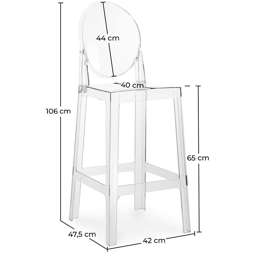 Este elegante taburete de bar estilo Victoire está fabricado de PC. Se trata de un taburete de bar muy cómodo, estable y resistente. El asiento tiene una altura de 64 cm, así que es perfecto para la cocina, el bar o un mostrador. El taburete de bar de inspiración Victoire combinará a la perfección con cualquier estilo de decoración.