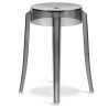 La gama de mobiliario resalta la combinación de líneas de mobiliario clásico con un toque de diseño muy contemporáneo. El uso de plástico transparente como material proporciona un soplo de aire fresco en el panorama del mobiliario tradicional. Este contemporáneo mueble se hará un hueco con facilidad en su interior. Esta moderno Taburete Transparente puede ser colocada en su salón, o en su patio crear un efecto enigmático. Puede acrecentar la sensación que produce esta contemporánea butaca añadiendo otras piezas de la colección para crear una atmósfera misteriosa. Aparte de su originalidad y diseño, este mueble transparente es también fácil de limpiar con un paño húmedo.